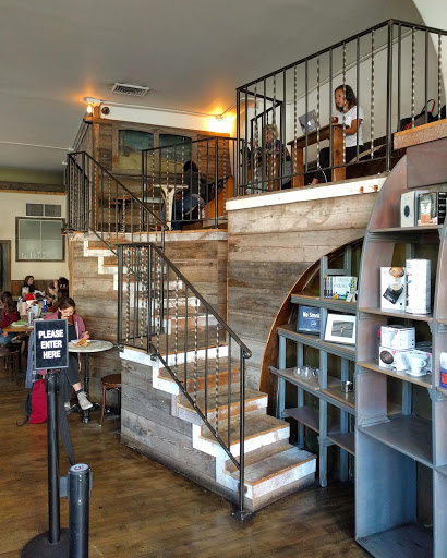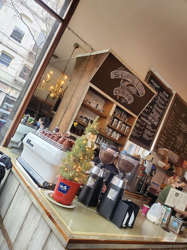 Beautiful space, counter culture beans, decent cafe food. Great to have in the neighborhood. Baristas can be hit or miss, but recently have been great. Love their house-made vanilla syrup too. Converted from an exotic restaurant, high ceilings and elaborate atmosphere, a great place to spend a coffee break.