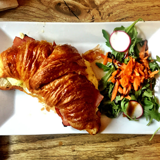 Good coffee and croissants, large storefront window lets in lots of light, friendly staff, mezzanine seating area allows for great views of Atlantic ave. & café goings on