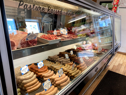 Amazing butcher shop and kitchen supply store. A wide variety of meats, sausages, stocks (including pork, duck, etc.), fats (duck, lard, etc.), and local produce. They also have local cheeses, eggs, and dairy products. Note that its also crazy Hipster, both in the workforce and in the clientele. :)
