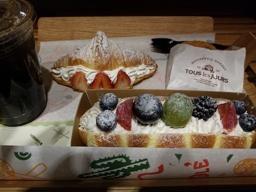 This Tous les Jours, newly opened in Summer 2017, has a similar yet smaller selection than that of K-Town in Manhattan. I love coming here for the baked goods and their fruit drinks. Whether due to size or different management, this Tous les Jours seems to run out of stock much faster than other branches, and service is lacking compared to what Im used to in K-Town. However, the food is good, and I hope more stores like this open up nearby.
