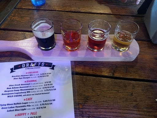 From Syracuse and came into town to visit for the weekend. Have been here before and had a decent experience. Today was completely different. Food was a rush job as the ribs were not the typical dinosaur style and were tough and chewy after not having any ribs or wings available. Secondly the server forgot peoples orders numerous times and even forgot to take the orders of one of technology groups. When it came time to pay she never even asked if the bill for 6 people was together or seperate and proceeded to make us split the check using a pen rather than doing her job. Once the bills were split and everyone was ready to pay she took another 30 minutes to cash everyone out. Band was not very good either but extremely loud to the point you couldnt talk with the person next to you without yelling.