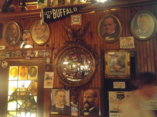 So the place is PACKED floor-to-ceiling with presidential and US historical memorabilia. You can just look at the walls for hours. If you go after 9 and sit at the bar, the famous bartender recites presidential trivia in an animated voice and knows pretty much everything there is to know about US trivia. Just try to stump him! :) The food is fine; normal bar food. They make a great warm tortellini salad and good sandwiches and always have FREE nachos and popcorn. Good drinks, too. This is a VERY unique and fun place in Buffalo, so bring out-of-town guests! Id highly recommend it.