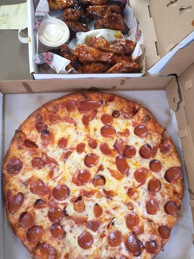 Good pizza, great wings, mediocre service. Put in an online order on a Tuesday evening. The email receipt said to allow 45-60 for delivery. Since I was picking it up, I went over after about 30 minutes. After waiting in line for the one staff person on the register register for 15 minutes, I finally was told that the pizza was done, but the wings were not. 15 minutes later I had to ask again for someone to check on my order. After nearly an hour total, it was finally ready. By the time I drove the ½ mile home, the pizza was congealed. Not too thrilled, and glad no one was waiting for dinner other than myself that night.