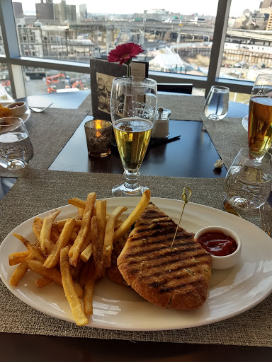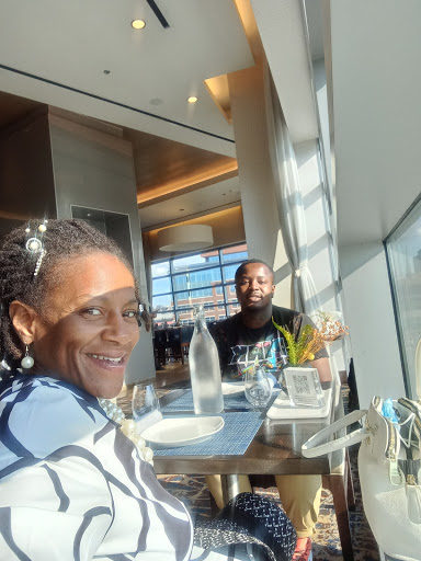 The food and service was amazing. It was our anniversary and they moved our table closer to the window for the view. Quiet modern and the view for the sunset was amazing. The staff was very friendly. It lost one star because its a strange set up that I wasnt expecting. The restaurant is in the lobby with the Marriott lounge in the corner of it. It was a mix of people in dressy casual wear and workout gear.