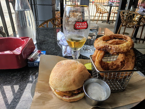 Excellent burger bar, the staff is courteous and prompt, the bar side is pretty happening even for a Thursday night, and my custom burger (kaiser, cheddar & mozzarella, bacon and a fried egg) and beer I had were both 10/10! I highly recommend this spot for a casual burger/sandwich in a sweet downtown nighttime scene. The patio is a nice seating area for conversations as well.