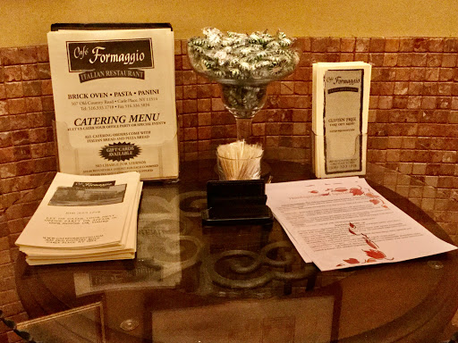 My family and I have been eating here for the "full gluten free menu" for years. Yes they HAD good ratings by the NewYork Times...years ago... My family has frequented this restaurant for the gluten free menu on special occasions for years and we have been happy - 4-5 stars. We used to get take out frequently until once they sent us home with non gluten free food which made me very sick- and all they said was sorry. Last night was the last time for good. We arrived early and were seated like we were in a cafeteria (on top of the next table all in a line-when the place was empty). Loud obnoxious Stan Fischler from the Islanders was our server and the service was good, until I asked if with my parmigian could I have sauted escarole instead of pasta like Ive done every other time I have ever eaten there. This Christmas Eve he comes out of the kitchen waving his hands saying "he said hes got 20 thousand orders going out tonite and no escarole for you." There were no gluten free options for dessert except for the worst dried out chocolate cake which didnt look or taste chocolate. They used to have gluten free tiramisu. I guess when your price fixed menu is just under $50 per person not including alcohol you cut stuff out. ????what? To top it off! the waiter came by 3 times to take the check while we were having dessert. My husband actually had to raise his voice asking him if he was trying to rush us out of our dinner when we were there less than an hour and the tables around us were empty!!! So, if it wasnt that Cafe Formaggio wasnt the only gluten free restaurant on Long Island I would suggest you skip it. For what you pay you get diner service and attitude, and the one star was not about the waiter.