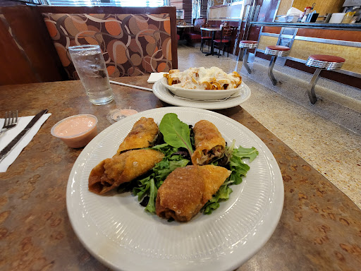 Decent food(typical diner fare), good portion sizes, clean bathroom thats regularly checked. The waiter was friendly but not overly friendly. My party of 3 got our food in really good time, though we only ordered burgers. I would come back. Very spacious.