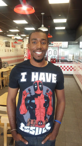 Calm and peaceful place plus a bigger open space for more seating. Their food is better prepared than other five guys restaurants, and their bacon wasnt burned and dried out, like I usually get from other five guys.