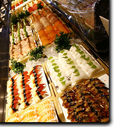 I went on thurs 6-1. Sushi selection was large but average. The rice is on the dry side so 80 percent of the sushi fell apart also the sushi rice was pretty bland. Ive been eating sushi since the late 70s from coast to coast so i know my sushi. The variety was pretty common nothing exciting. The lack of sashimi was a let down especially at that price other quality buffets at lower prices have ample selection and amount i was disappointed. The only raw fish was on tiny dishes with various sauces i prefer my sushimi plain so i can enjoy the fishs natural flavor. I also found the hot food lacking in variety and the teryaki was extremely salty. The crab legs were washed out and unpleasant. I am not bashing the place but with all Ive heard i was expecting much much more. Higher price and fancy atmosphere doesnt mean better food. I wont return. I will stick with the cheaper buffets wjere food is better. Like d.j.s