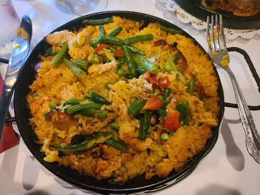 Over priced flavor ok but I order fajitas steak and shrimp $23 and I got a tiny shrimp and little pieces of stakes a little bit of rice and beans Im Mexican and I know what a real Mexican food is flavor was just ok my husband order paella he really didnt like I order fajitas all the time and this was not what Im used to I give 2 starts just for the waitress