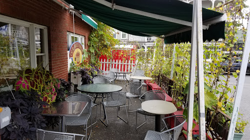 They have a nice covered patio and the food is fresh and good (I especially like their baguettes). It is typically busy on the weekends, so dont be surprised if you have to wait in line to order and your meal takes a little while to be prepared. The atmosphere is nice, with interesting art and community events posted, and it is fun to look at the local products they sell in the fridge up front (cheese, milk, pasta, etc.).