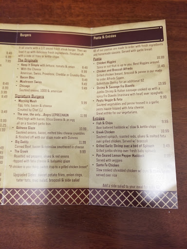 Incredible food, especially Wednesday nights, (pasta night). You will never leave hungry thats for sure. As far as Ryan OMaras review goes, its quite obvious the bartender thought you had left. Friendly, honest hard working employees. Hope they continue to thrive in this small community, and if you havent been there yet for drinks or food, what are you waiting for? Try it out and support your local family owned establishments. You wont be disappointed. Oh! And dont forget to tip 20% or more!