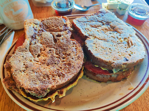 Large menu to choose from. Homey, local restaurant. Awesome staff! Breakfast wrap is tasty. Great Eggs Benedict and Ham Stuffed French Toast. Had supper there one night and shrimp was delicious and served with good sweet potato fries.