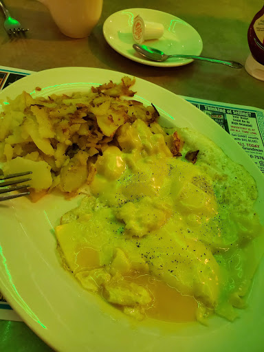 Great American Diner food. You wont be disappointed. And the menu items are diverse and affordable. Ive never seen a place where I can get a Belgian Waffle, Ham Slice, Egg, and Sausage for less than 9 dollars and still have them be full of flavor. The wait staff is wonderful ranging from the energetic zing of young waitresses to the convalescent care of the older ladies.