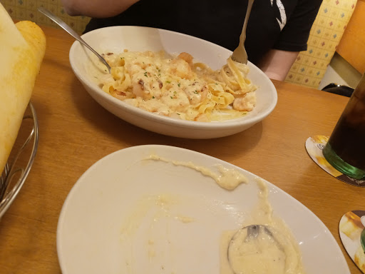 Stay away, take the 15 minute drive to Wolf Rd, its much busier but theres a reason why, it will be well worth it. I came here shortly after the opening and the food was bland. I figured it was new chefs and brand new "unseasoned" pans. I went back today and my seafood fettuccine alfredo was old and gritty. The "seafood" was tiny bay shrimp and bay scallops. My husband ordered the tour of Italy, same nasty pasta. The chicken parm was hard as a rock. When he flipped his crusty lasagna over, it had grill marks on the bottom and the inside was browned. Our dishes were obviously old and reheated. We went at 3:30 and it was dead, yet we waited and waited for our server to come back and take our order. We did not see the server again after meal was delivered. The manager said the alfredo sauce did not melt correctly, but looked as if it was microwaved. The portions were horrible, our daughters cheap kids meal contained more food than the $12 pasta and the $17 tour of Italy. We used to work on Wolf Rd and eat there frequently without a problem, now we will continue to drive out of our way past this one and go to Colonie.