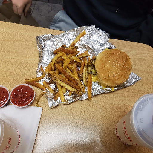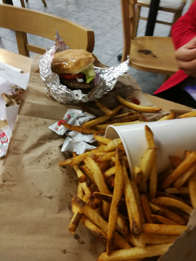 I like the burgers here and the fries. You get a customizable hamburger. A little Hamburger contains 1 beef patty, a hamburger contains 2 beef patties. The cajun fries are delicious, and every Five Guys I go to ALWAYS gives a lot of fries. A small fries is enough to feed 2 people, large fries can feed up to like 5 or 6 people. Its difficult to find a better deal I take 1 star away from this particular Five Guys location, because I discovered they do not sell milkshakes here, while other Five Guys locations do.