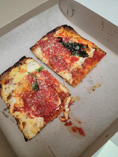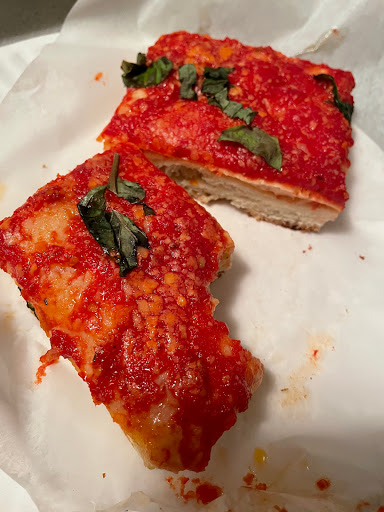 This is my favorite Sicilian pizza place in NYC! The crust is the right thickness and its crunchy! The portions are huge and great for feeding a large family for $20. They have great garlic knots as well. They are not greasy and a good amount of garlic and salt!