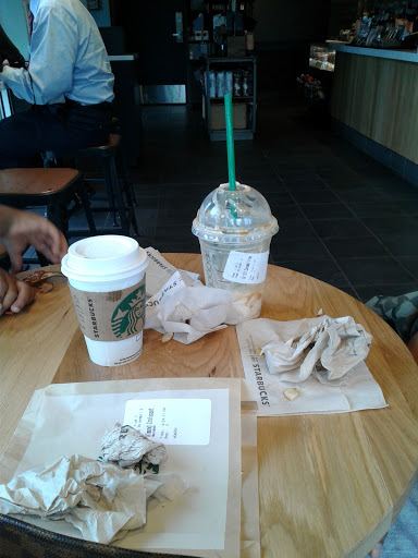 Its starbucks. Youre here because you need coffee and youre either getting off or getting on the highway. Its a bit slow at this one because there drive through was packed.
