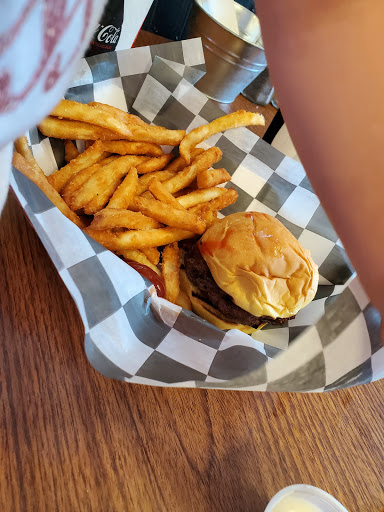 When my friend asked what wanted for dinner I just said a burger. So he looked up places to go with good burgers that is cheap because we broke. So we saw the reviews for this place and said sounds fine. As I walked to the front door, a bald eagle came out draped in the American Flag. I walked in and ordered the most American burger possible, a bacon cheeseburger. But this was no ordinary burger, it was stuffed with bacon and cheese, with delicious fries and a refreshing coke. At the end of the night I ordered a milkshake that was out of this world. If you ever want a good, inexpensive burger, this is the place to go.