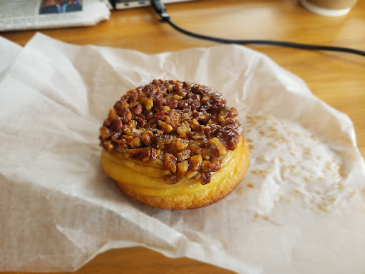 Its only my secondary time here. I "starred" it on my map to make it a point to stop in here next time Im in the area. The place is super cozy, and in a great location (not necessarily convenient). The coffee is rich and strong. Their pastry selection is limited. They have vegan pastries which loom taste but Ive had my treat for the day. I cannot comment on their fancy coffee beverages as Ive never had any. They also sell beer!!! Its the only cafe I can think of that does in NY. Now down to business... Strong coffee: (which is how I gauge a Cafe): A++ Location and ambiance: A++ If youre going to give it 2 stars because its pricy, thats not totally fair. Small Ice coffee was $3.25. I had about half and was "super charged". Value: A+ Man I sound like Im a partner in this place. Im not :-(