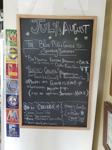 love the blue pig!!! ice cream is delicious and the staff is friendly and warm. theres a fun little garden outside to sit in and relax. we are here at least once a week all summer and we drop in pretty often in the winter too.