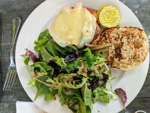 Good solid burger place with great draft beers. Oh, they also do a very nice lobster roll. Very good prices. Outdoor dining in the summer. Eaten there many times and never been disappointed.