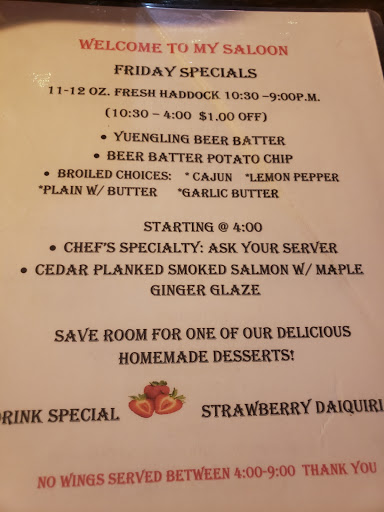 Excellent place to go for great food, and fun! Be sure to meet the owners of My Saloon as they are the most wonderful people you would come across! The food is excellent and the atmosphere is great! Wonderful service and very, very fast! 5 stars in my book!!!!