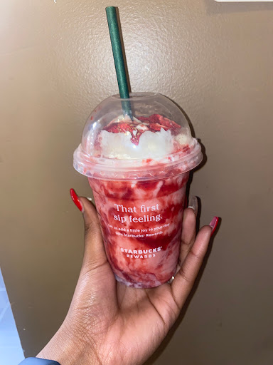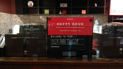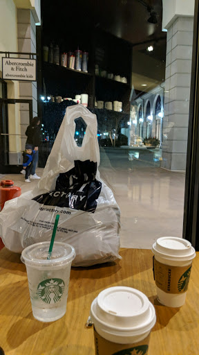 Yes, there is a Starbucks here. Its in the outdoor mall, visible from the parking lot.