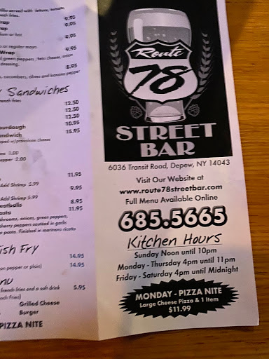 Love taking the family here every Tuesday for wing night.. Bradford style wings are some of the best wings I have ever had!.. The staff at route 78 are charming and ur food is delivered extremely fast.. I highly suggest if your thinking about trying route 78 you do. You wont be disappointed.