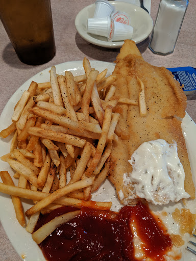 Decent food, good service, good for families. Large menu and serves breakfast until close. Fairly large space.