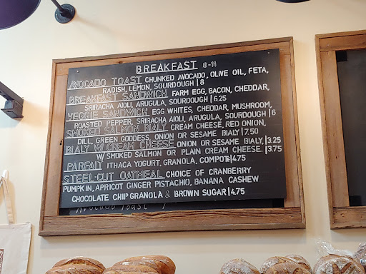 As a frequent visitor of the Elm St. Bakery, I can attest to their consistently amazing food. There arent many (if any) places you can get locally sourced, seasonally inspired, great tasting cuisine that is way better for you than any other restaurant youd get in the area. A few things my husband and I love: -The Food: The food here is hands down some of our favorite. They put a lot of time into creating their menu, which changes weekly (by a few items) and seasonally, according to what veggies are available. You can tell that their hearts are in their cooking and presentation. -The Staff: The staff here are very hard workers and want their customers to have a great time. Even on their busiest of nights Ive yet to hear any employee complain, and they always go above and beyond. They know theyre helping serve up quality food and really enjoy doing so. -The Atmosphere: The Elm St. Bakery is housed in an awesome location in cute town East Aurora, NY. You can eat outdoors on their patio area, inside along the windows at nice tables to watch the East Aurorans walk by, upstairs to have an overhead view of the bustling restaurant, or downstairs in front of their talented chefs. This also has an awesome view of their 800*F + wood stove oven that they use not only for pizzas but many of their main dishes. -The Baked Goods and Desserts: I really cannot say enough.. Where else can you find such amazing gluten free options? Their baked goods, thanks to Luci and friends at the bakery, are out of this world... Were talking amazing breads, cakes, cupcupcakes, chocolate ganaches.. Their coconut macroons are THE BEST. The cowgirl cookies are my fav.. I pretend theyre healthy granola bars (and they probably are better for you than most granola bars out there). We had the ladies at Elm St. bring some amazing desserts to our wedding last year and our guests loved them so much theyre still talking about how much they enjoyed them (yes, they cater weddings and parties too!). -Also: I didnt even get into their amazing breakfasts (uhm great kimchi, local eggs, breakfast sandwiches, lox/bialy yes please!), their coolers of great cheeses and drinks (kombuchas, beers, etc.), housemade granola to go, and a really nice selection of fermented foods! -To the review saying they dont have dairy/meat free options: Yes they have PLENTY of meat free options and always have, and they are more than happy to accommodate all dairy free requests. Im not a writer, I dont work for them, and I could (obviously) keep going on and on.. But I wont. Just go eat there. :) If you want wonderful food at a place that makes you feel more positive and inspired after visiting, I highly recommend the Elm St. Bakery. Enjoy.