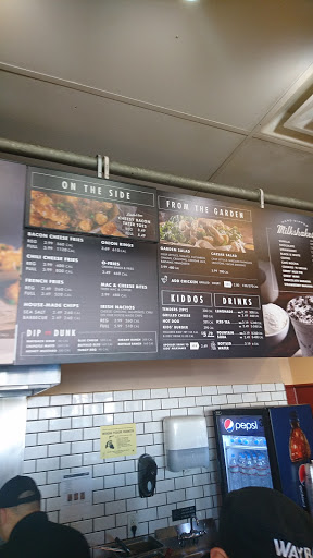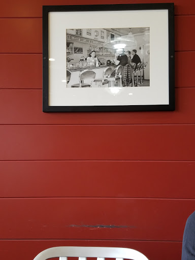 Solid burger joint complete with great milkshakes and quick service. Burgers made fresh to order while you wait. Onion rings are yumm!