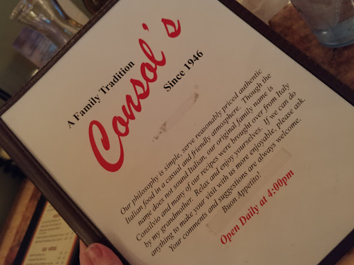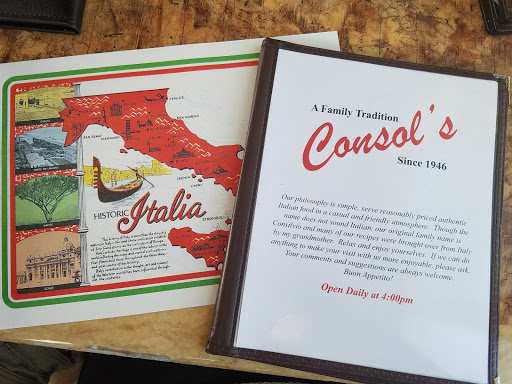 Fantastic pasta! My wife and I love visiting Consols when we are in town. My favorite is chicken parmesan and homemade spaghetti. My wife loves most items including their beans and greens. Dessert must try the chocolate cake!!