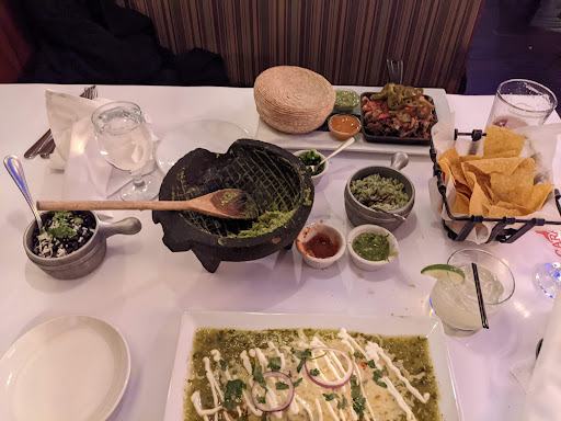 I am only giving 2 stars and thats one for the guacamole, and one for the atmosphere. The food wasnt that good. My taco de fuertas (or whatever it was...a low key fajita basically) had 2 thin slices of pepper on it and about 2 onion slices with overcooked chicken. The soft taco tortilla not only had no flavor but was the size of the palm of my hand. I liked the guacamole that they made right in front of us, but the dessert (churros) were hard. Maybe its because I went to Cabo San Lucas Mexico and was spoiled by the food over there, but this place wasnt that great. The wait staff was great...but overpriced food for such a small amt is rediculous. I mean, I liked that the serving was small (you cant overeat) but then they should lower the price.