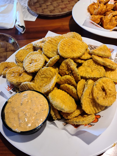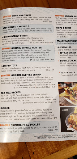 "Hi, Welcome to Hooters!" was our greeting from the staff as we entered this very spacious and neat Hooters location. Instantly, we were seated by a friendly hootie who took our order. Our beers and fried goodies arrived shortly after. As always, the Hooters wings were great and the fried pickles were a new treat. The staff was energetic and sexy. Fried flesh and alcohol served up by tempting nubiles is the personal nirvana of man throughout the ages. This Hooters location honors this tradition with copious amounts of sexy bodies and tasty food.
