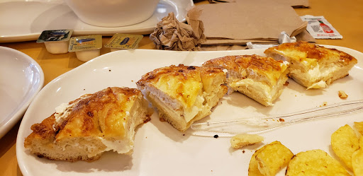 Only one person on the register, who was also the manager, and a line out the door. She was doing her best, while also making smoothies, trying to help a young guy who obviously didnt know a smoothie from a movie. The cup was overfilled and spilled all over my feet when I tried to take a sip. When my $9+ sandwich came out, it looked like Panera doesnt own a knife and the bread, much too small for the filling, was ripped apart and full of holes. As usual, there was way too much "sauce" on the crumbled bread also, so the entire sandwich fell apart the second I picked it up. Thank god the napkins are free because I needed about 15 to mop up the mess everytime I tried to take a bite. I would have complained but didnt want to cut the still long line and wasnt going to wait another 20 minites on the end of it. Unfortunate.