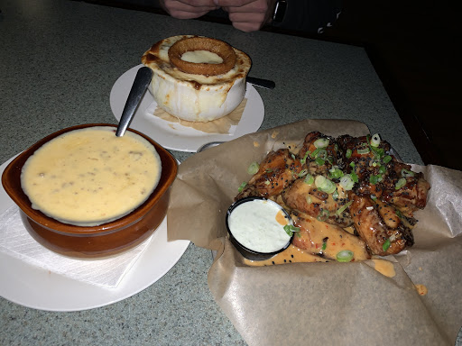 Cant rave enough about how awesome this place is. The wings and Mac n cheese are the best Ive had to date hands down. My phone died before I could take photos but the decor and atmosphere are superb. Our waitress Taylor (hope I spelled it correctly) suggested amazing food and drinks and we were blown away at how good it all was. Its very clean and there wasnt really a wait at all. Totally thrilled and cant wait to go back. Dont miss out and definitely try the garlic parm wings or the French onion grilled cheese, theyre to die for!