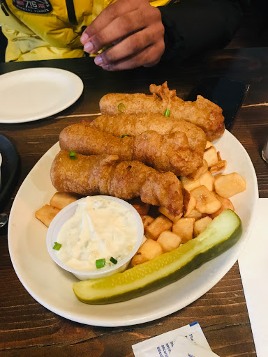 I had a great experience here for lunch today. We got the buffalo calamari for an appetizer (which was delicious) and I had the buffalo wings as my entree. I would definitely recommend both!Atmosphere and decor was cool, well-lit, and spacious which made for a nice space. I will definitely be returning for another meal.
