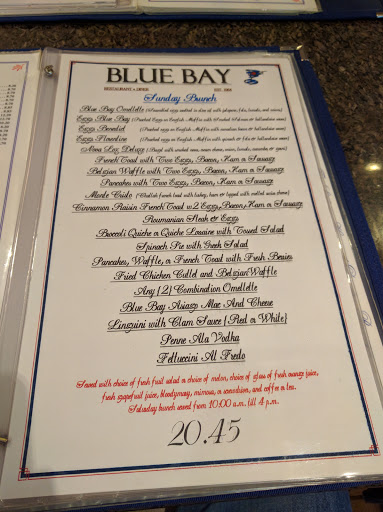 Never going back, and you shouldnt either. Went to Blue Bay Diner late. Sept 17-18 2011. Had an okay meal. Waiter was good. My friend thought the rice pudding had tasted as of it had gone bad. She told the waiter. He took it off the bill, although we didnt ask him to Her intention was just to give him a heads up that it may have gone bad. When I went to pay the bill the "night Manager or whatever wanted to question why the bill had changed. My friend spoke up and to him that she thought it tasted like it had gone bad. This arrogant jackass stated THERE IS NEVER ANYTHING WRONG WITH OUR FOOD AND NO ONE EVE COMPLAINS ABOUT THE RICE PUDDING! There was no, Im sorry we will check on it or whatever. Sounded like someone who may had heard this one before Thought the waiter was good. Too bad he has to work for such a fool.