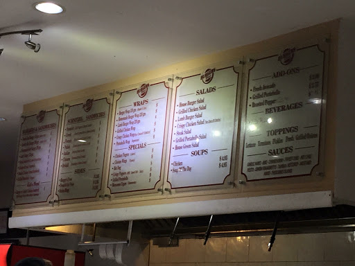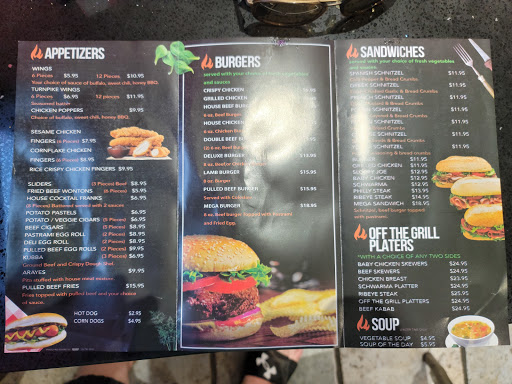 Kosher burger joint. Not bad. The prices are reasonable. Different kind of burgers (beef, lamb, chicken). They have a variety of snitzel sandwiches, which are different. The soup is good. Service was good. No cheeseburgers. Fries are good. Not expensive for kosher food.