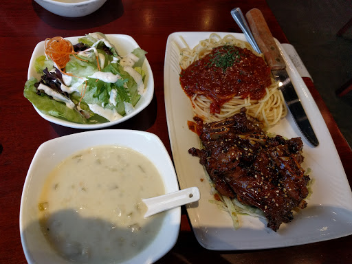 Okay, let me just say this, leave the Italian and American cuisine to THE AMERICANS AND THE ITILIANS, I am incredibly disappointed with the spaghetti with meat sauce I ordered. From years of eating Italian food from actual Italian restaurants, it is easy to tell that the meat sauce is canned instead of homemade. I also order a t bone steak, the flavor was average but it is way over cooked. Tasted like rubber, what a waste... Last but not least, I thought the sushi would be good since everything else were disappointing, it did not live up to my expectation. The rice of the sushi is not cooked right. Way too hard to be chew down easily!! Come on! At least get something right!! .. disappointment