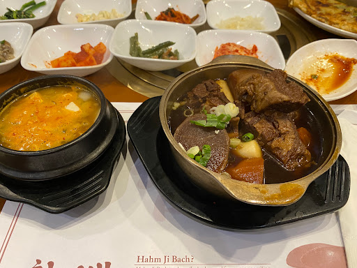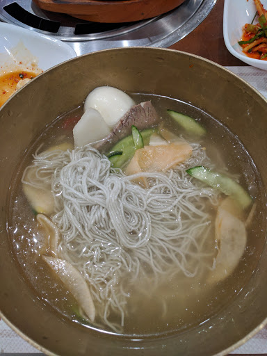 If youre willing to venture out of Manhattans K-town, this is the place to be. The ban chan are fresh, plentiful and never-ending. They dont just give you 3-4 small dishes, you get more like 9-10 side dishes that could honestly fill you up before you get your main dishes. Pace yourself! Lettuce, salad, spinach, pickled cucumbers, bean sprouts, tofu cake, kimchi, prepared bean curd, many sauces... I dont even think I listed everything! The meat isnt some dinky frozen stuff, its HUGE SLABS of meat, plentiful and very very very tasty. We ordered the thick slices of pork and LA kalbi. They help to cook your raw meat on the hot stove and for NOOBS like myself, are willing to teach you how to properly eat the various types of meat that you order. Everything is very well marinated and full of flavor. They make sure that you dont overcook the meat and are very attentive to make sure you have everything that you need. It is premium prices but its worth paying for the quality. Its hard to find that in Manhattan.