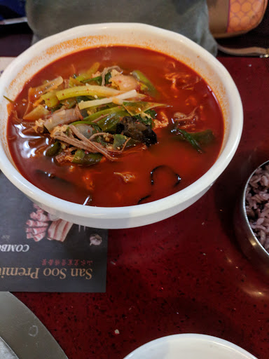 Just came to get some normal grub with family: bibim naem myung, soon doo bu, stone bibimbap. The only one that didnt disappoint was the bibimbap. Very little meat in the naem myung. Like 2 pieces of seafood in the soon doo bu, very different from the menu picture. For the price we should be getting more hearty ingredients. Glad I didnt order the haemul pajeon. It may just be $20 for 2 pieces of seafood. Perhaps this is a BBQ focused place but it doesnt mean other dishes should be sub par relative to the price tag. Two stars since I havent tried the BBQ. And lastly the kimchi was sour. Of all the years Ive eaten kimchi, handmade or restaurant, this kind of sour is the, this food has gone bad sour. When we raised a question about it, the waiter just dismissed it like, kimchi is sour. You are just not used to it. Well if this type of unappetizing sourness is standard here, wont be coming back again.