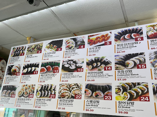 The kimbaps here are great. There is a large variety to choose from and the kimbaps are packed with filling, so it doesnt feel like you are eating just rice. The prices are also really affordable so you can easily fill up on a budget. The only thing is that this isnt a place to sit down and eat because there is limited space to enjoy it indoors, so I would recommend it for on the go. I havent tried many of the kimbaps here, but I would definitely go back for more if I were in the area. I had the spicy squid kimbap and others which I dont remember, but I love that its not overly spicy. Ive had it at another place before and it felt like they coated the squid with a thick layer of gochujang. They also offer free soup if you order more, but the soup isnt really my thing. They do offer other dishes if you want more than just kimbap but I have yet to try them so I cant tell if they are as great. Overall, a great spot for kimbap for on the go!