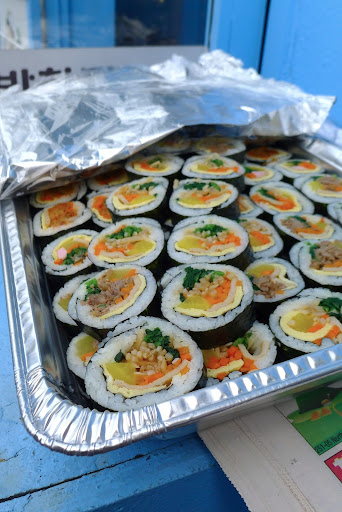 The kimbab here is unique. Looks like sushi but tastes totally different. The kimchee is the way to go!