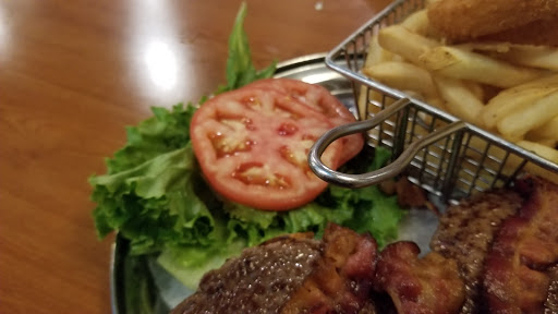 Friendly service, yummy food.... we had the deluxe cheeseburger... delicious... it was served on a small round (pizza?) tray and the fries were in a small deep fry basket?.. really cute presentation. .. there are a lot of places around here you could go have Lunch, this place is definitely worth a second trip. .. really enjoyed it. ..