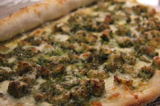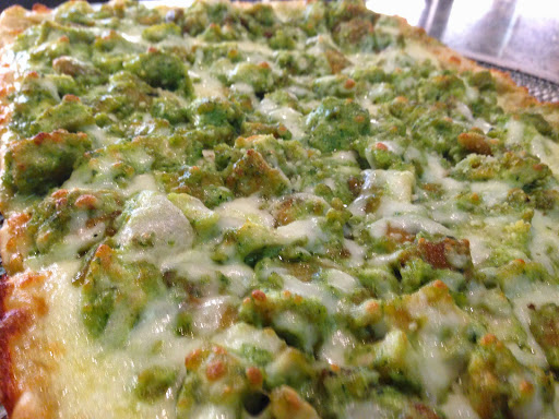 I came to Atlantic Pizzeria to celebrate a buddy of mines birthday because it was his favorite pizzeria. Being a musician, there is nothing i enjoy and appreciate more than having music play in a restaurant. I am not talking about music blasting louder than it does in a club, but music playing softly in the background so that you dont have to listen to another tables conversation. Atlantic Pizzeria plays classy Blues and Jazz music which goes perfect with their decor. They have photographs and a mural painted on the wall that is museum quality. Absolutely incredible. As soon as I walked in, I told my friend that this has to be the coolest pizzeria I have ever seen. He told me to wait until I tried the pizza... The staff accommodated all 11 of us, putting some tables together. We went to order a bunch of small bottles of coke and they recommended saving a few dollars and just getting 2 liters as we needed them which i thought was very nice of them to do, most places would rather make the extra money instead of helping the customer do the more logical thing. When our pies came out, I felt like a kid in a candy store. We ordered a Cheese Pie, a Layered Eggplant Pie, and a Grandma Pie. I am still trying to decide on my favorite...thats how good they all were. The cheese pie was the best I have ever tasted. It wasnt greasy and they do something to their crust to give it the perfect amount of crispiness. The Eggplant pie was better than I expected. Three layered of delicious eggplant with marinara sauce in between each layer then dolloped with ricotta cheese on top. It was phenomenal. The grandma pie we got more for the ladies with us, but we ended up having to order an extra Grandma pie because everyone enjoyed it so much. I was very impressed with this Bluesy Pizzeria. I have never been anywhere quite like it. I will definitely be back.