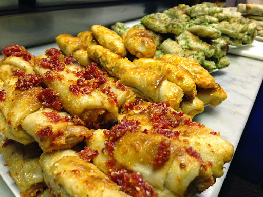 I have always loved Atlantic Pizzerias pizza and garlic knots but now I have a new obsession. They make these Stuffed Knots that are filled with delicious things...like cheese, pepperoni, buffalo sauce, pesto sauce, and roasted peppers. I cant even explain how yummy they are. The Roasted Pepper ones are my favorite. They have the right amount of mozzarella cheese mixed with roasted peppers, it is just delicious. The stuffed knots are served with a cup of their homemade marinara sauce which is out of this world. I always ask for extra sauce and find myself scraping the cup clean because it is just so good. I highly recommend getting some of their Stuffed Knots. I have gotten all of my friends to try and they love them too.