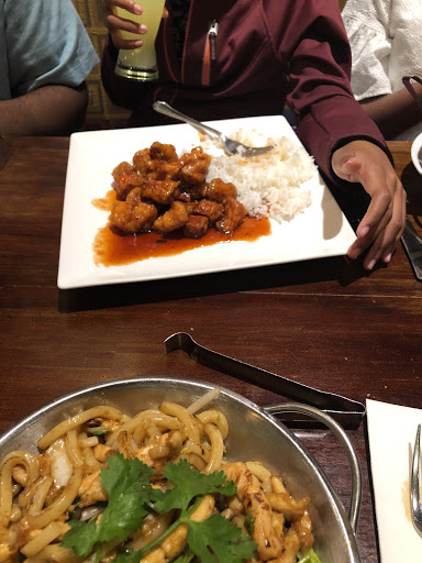 Went before heading to the movies. The ambiance was modern. The ladies room was clean and neat. There are plenty of servers and staff. The prices were moderate. Service was speedy. They were quick to refill water glasses and a number of different waiters approached us to take our order while we were perusing the menu trying to decide what to order. I settled on the Vietnamese Salad which was good! My entrée, Indonesian Sambal with Chicken, was ok. He ordered a House Salad (mixed greens) with avocado. It looked fresh and delicious. He gave his entrée, Broccoli in Brown Sauce with Chicken 4 out of 5 stars. He mentioned that the broccoli was roasted. The portions were medium to small-ish. We did not order drinks. If youre expecting help in the form of explanations from the waitstaff dont hold your breath. Ive never had Vietnamese nor Indonesian food so I was curious about a few things. My husband was in the middle of asking a question about a menu item when the waitress just abruptly walked away to welcome a group arriving. Other than the above it was a meh experience. I was left feeling like something was lacking- I probably wont go back. Mediocre.