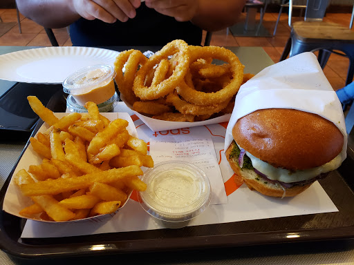 good location for a terrible burger spot. small and crowded. especially picking up orders. bobbys burger palace is just down the road i give them 5 stars every time. avoid the burger spot.
